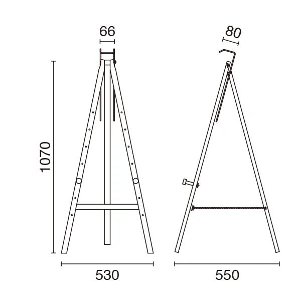 三角イーゼルの寸法図