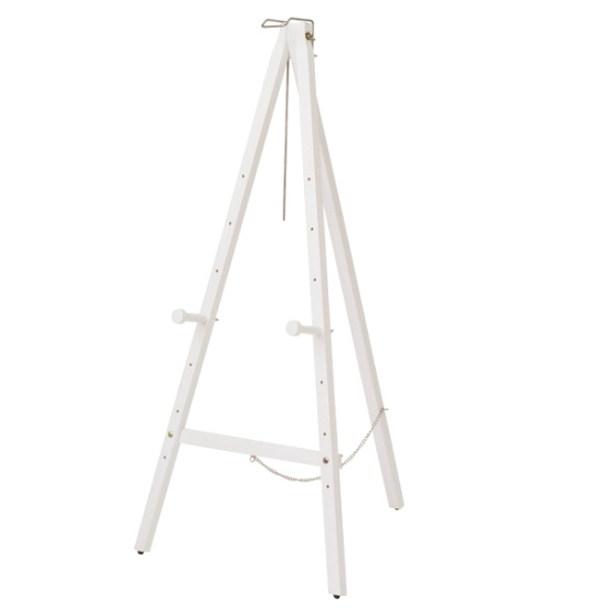 ホワイトカラーの清潔感のある木製三角イーゼル。