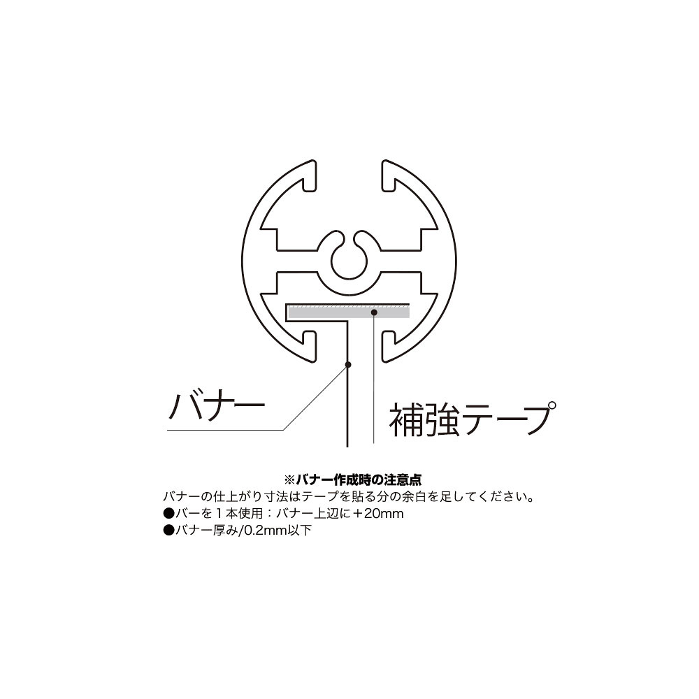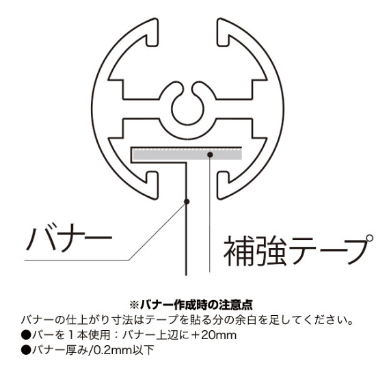 ※1本単位の販売です。※タペストリーバー1本に飾りキャップ2個とパナー補強用テープ1本が付いています。