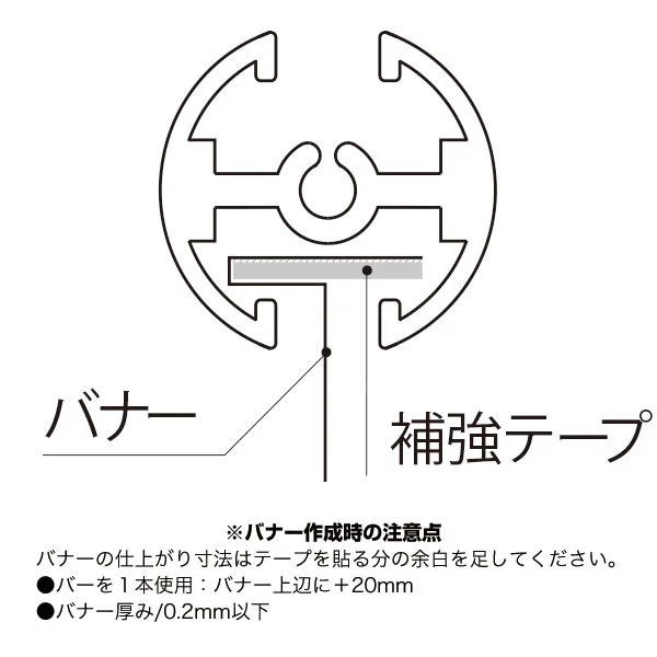 ※1本単位の販売です。※タペストリーバー1本に飾りキャップ2個とパナー補強用テープ1本が付いています。