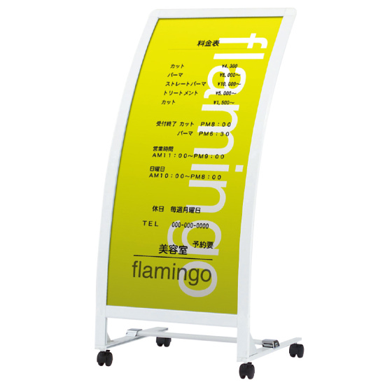カーブサイン RX-47 面板貼り込み式 ホワイト キャスター付を使った看板デザイン例のご紹介!