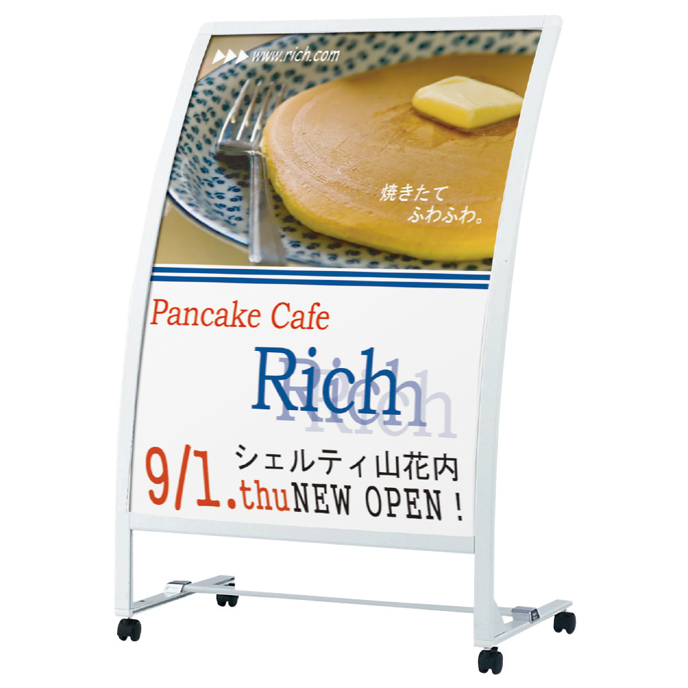 カーブサイン RX-75 B1サイズ ポスター差し込み式 透明板付 キャスター付を使った看板デザイン例のご紹介!