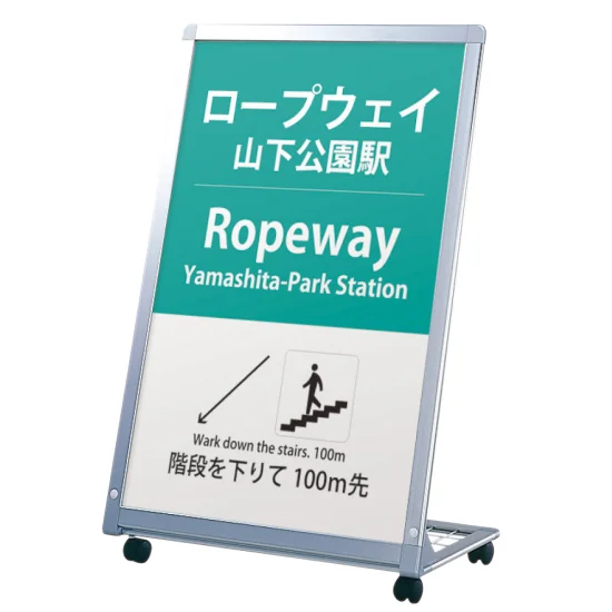 - L型に傾斜しているので表示面が見やすいスタンド看板です。