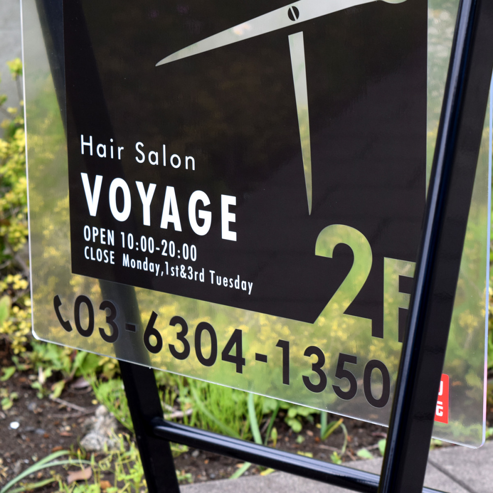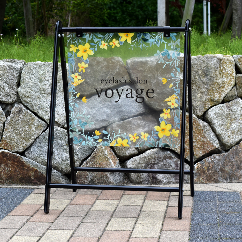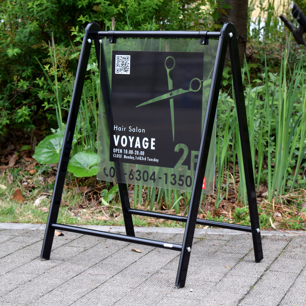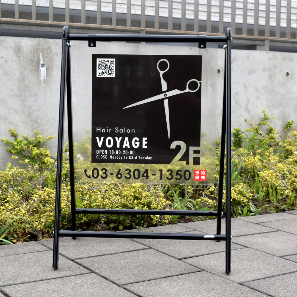 サインモール オリジナル バリケードサイン Bサイン 屋外用透明アクリル板仕様 ブラック (B-445)を使った看板デザイン例のご紹介!