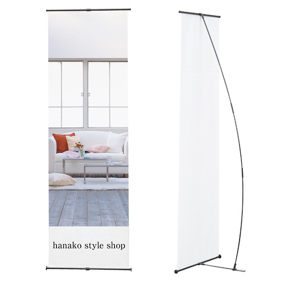 - タペストリータイプなので正面から見ると、スタンド本体が目立たず、バナーが強調されます。