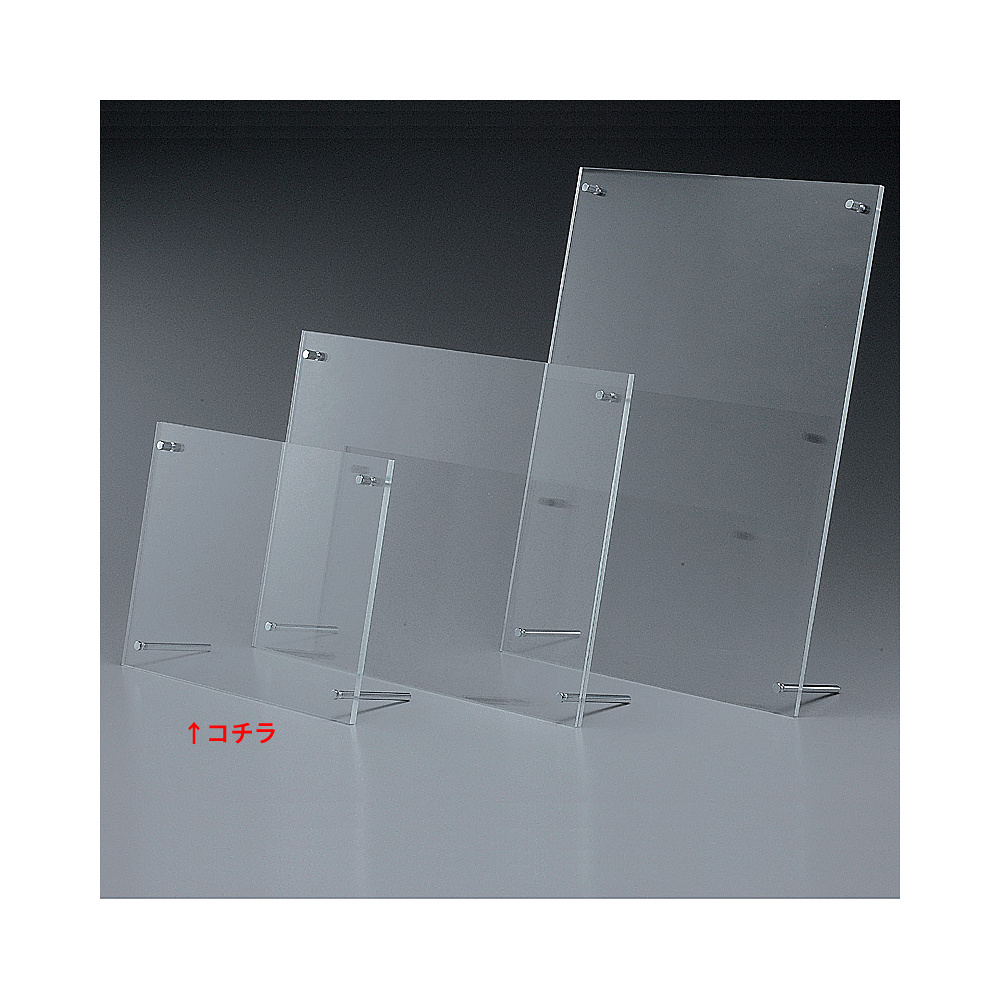 - 2mm厚と3mm厚のアクリルボードにPOPを挟んで立てる形となっております。