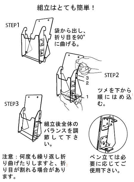 - ・壁掛で使用の場合は、三角の足を裏側へ折り曲げて下さい。