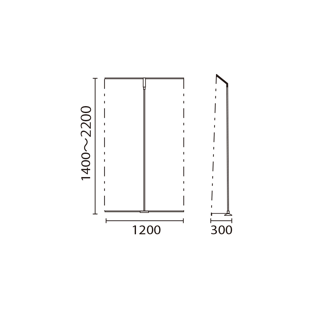 - W1200×H1400~2200mm(重さ800gまで)※上下約10mmが器具内部に隠れます。