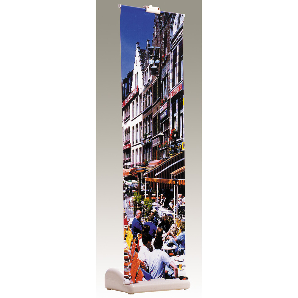 土台部分が注水タンクになっているので転倒防止に効果的です。袋縫いタイプのバナースタンド。