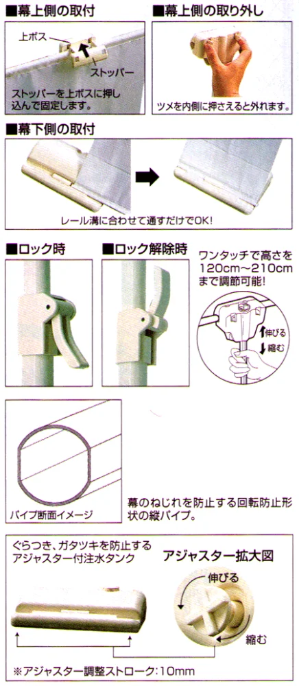 - ■幕のねじれを防止する回転防止形状の縦パイプ