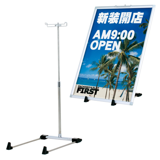 - 店内の見通しをさまたげない、ロータイプのパネルスタンドです。