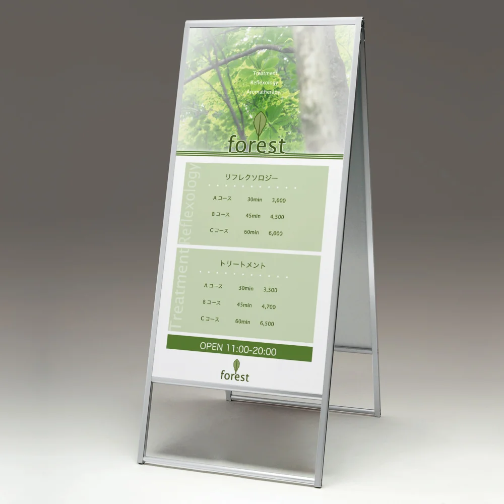 アルミ枠A型スタンド アルモード 299 屋外用 両面 600×1200 を使った看板デザイン例のご紹介!