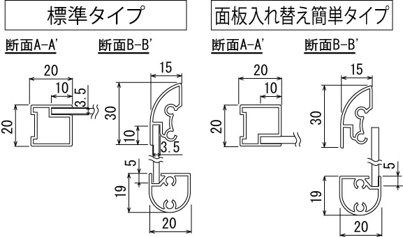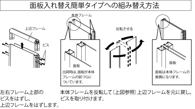 - 面板の入れ替えが簡単タイプに組み換えが可能。