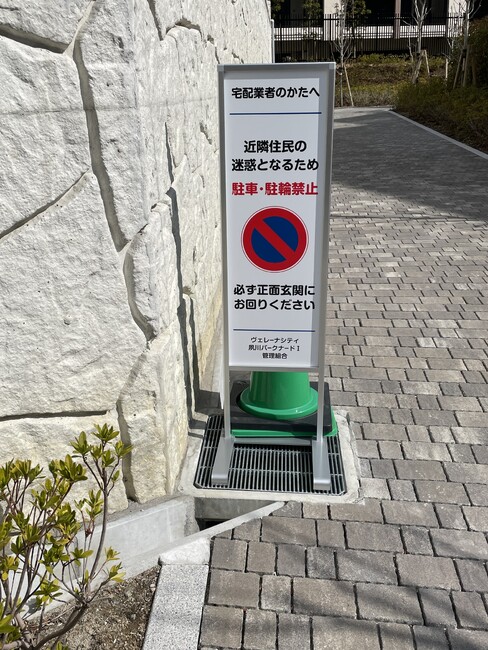 子供達がマンションの駐車場を遊び場にして困っていたのでこの様な看板を設置致しました。