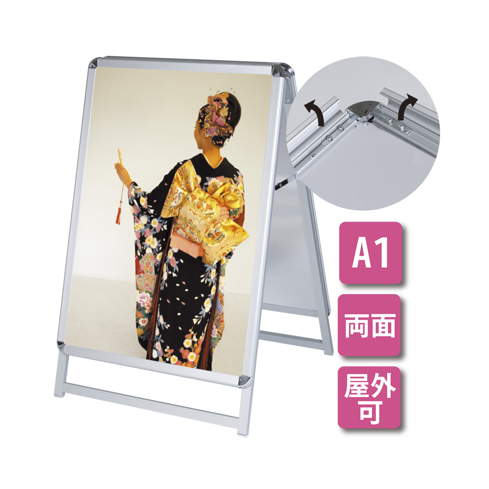 A型看板 グリップA シルバー サイズ:A1両面ロータイプ(H1m以下) (42456A1L)