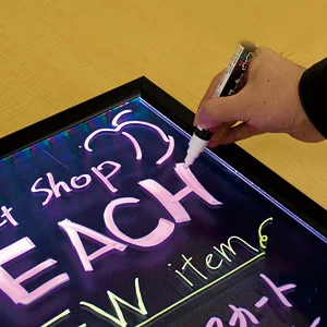 「どれを選べばいいか迷う…」という場合もご安心ください。 掲示場所や用途をうかがいながら、サインモールスタッフが一緒にブラックボード(マーカータイプ)をお選びします。