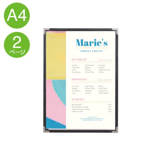 ローコストで大好評のクイックメニュー。カフエ・レストランなど様々な場所でお使いいただいております。中紙の出し入れが簡単なクリアタイプです。