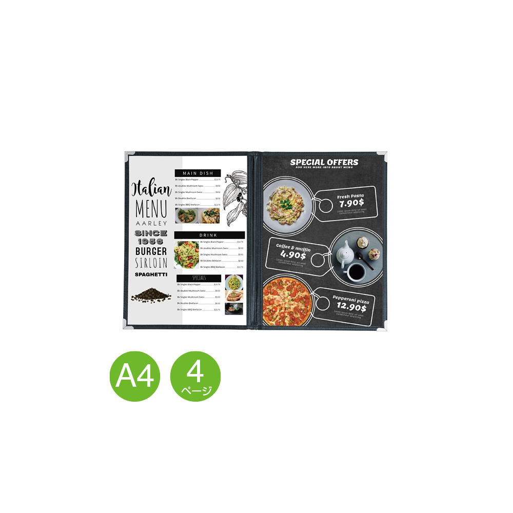 商品説明:クイックメニュー (A4-4P) 黒 QM-2