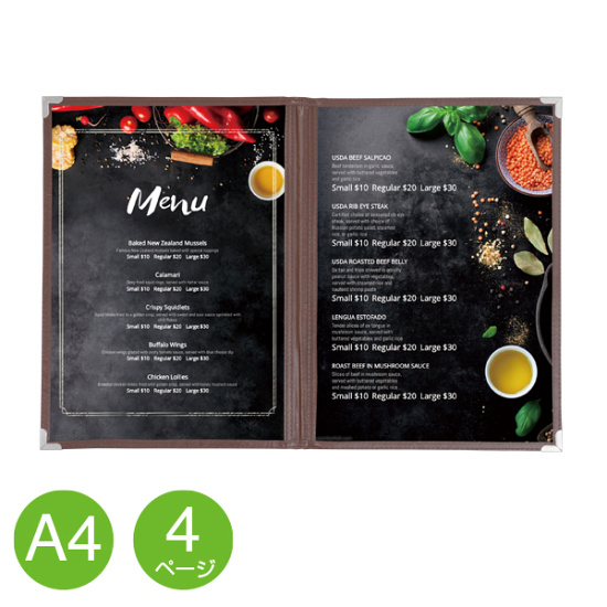 ローコストで大好評のクイックメニュー。カフエ・レストランなど様々な場所でお使いいただいております。 中紙の出し入れが簡単なクリアタイプです。
