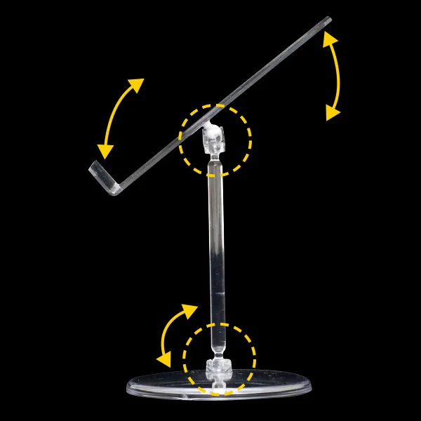- ■自由な角度に調節可能:商品代とベース部分のジョイントはいろいろな角度に調節できます。