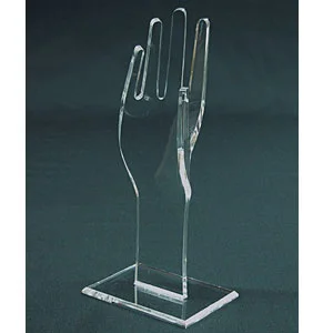 - スタンドの手の親指の部分が、前にとび出ていますので、女性用の伸縮性のある手袋でしたら入るかと思われますが、入れた時の形は良くないかもしれません。あくまでアクセサリー用となりますのでご了承ください。