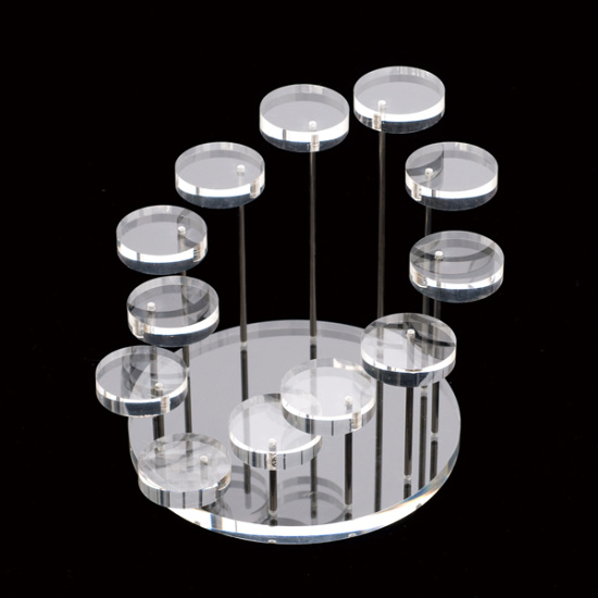 たくさん小物を置きますと、とても見栄えが良くなるディスプレイ台です。アクリルなので透明感があり綺麗です。下についている棒が金属で目立つため、透明だったら更に良かったと思います。