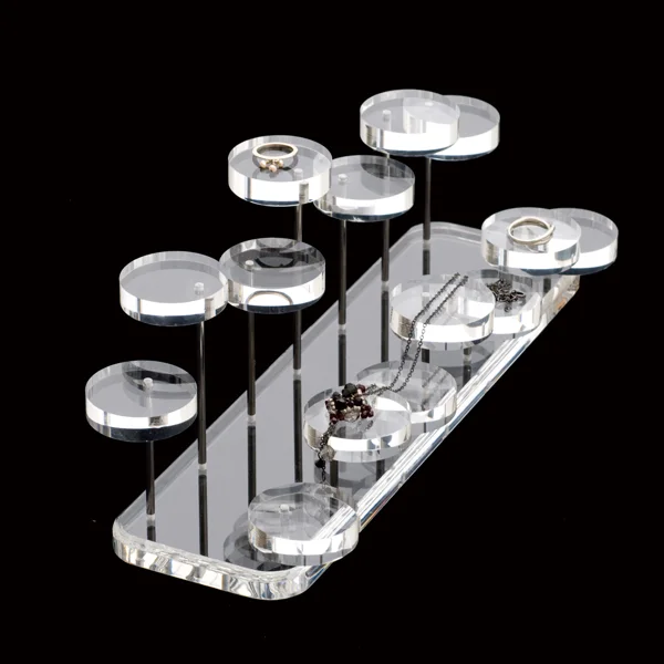 たくさん小物を置きますと、とても見栄えが良くなるディスプレイ台です。アクリルなので透明感があり綺麗です。下についている棒が金属で目立つため、透明だったら更に良かったと思います。