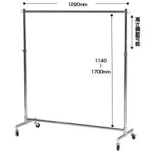 - 強度・耐荷重・耐久性が大幅UP!!アパレル業界の要望に応えたプロハンガー。リース用にも最適。パイプを太くし、脚部を強化。キャスターは大型のφ50mm車輪!