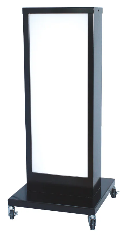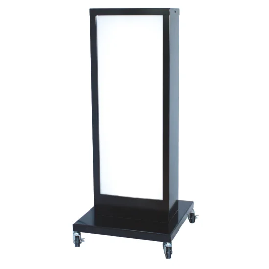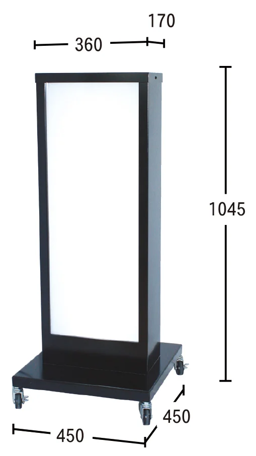 - 全高1045mmのコンパクトなボディに810×300mmの広告面を備えた、扱いやすさと視認性を両立する電飾スタンド看板です。