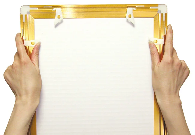 - 裏側のジョイントパーツボタンを押すだけで、ポスターのセットが簡単にできます。