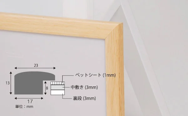 - フレーム:木・PETt1.0・中敷きt3.0・裏段t3.0