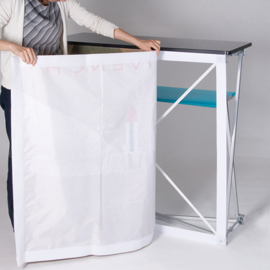 組立簡単!軽量で持ち運びも楽々のタペストリー(布)メディアのカウンター