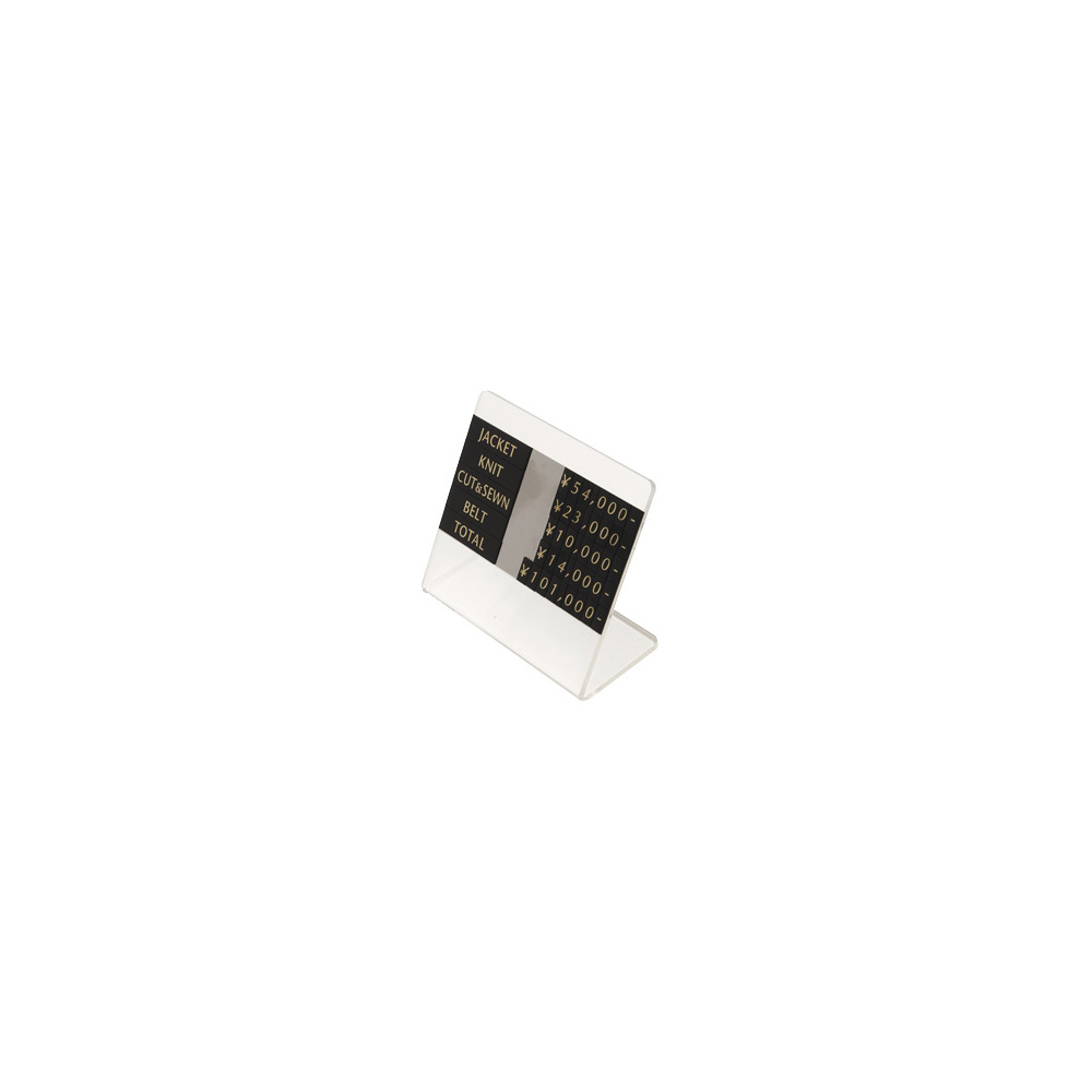 棚やテーブル置き商品のトータルプライス表示に最適な卓上タイプ!グレード感を高めるアクリル・ステン・クローム、ベーシックなシルバー・ブラックと売場シーンに合わせて選べます!