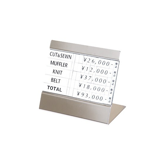 棚やテーブル置き商品のトータルプライス表示に最適な卓上タイプ!グレード感を高めるアクリル・ステン・クローム、ベーシックなシルバー・ブラックと売場シーンに合わせて選べます!