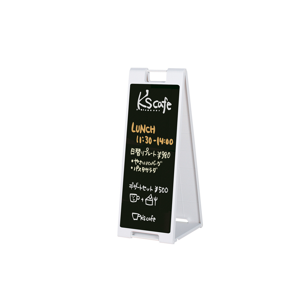 「スタンドプレートSP-918 (チョーク用) 白 (A1638WHT)」の導入をご検討中ですか? 大量注文・複数台のご検討に応じたお見積りのご相談、最短納期や送料、仕様・サイズの確認など、 黒板式A型木製看板選びをまとめてサポートいたします。