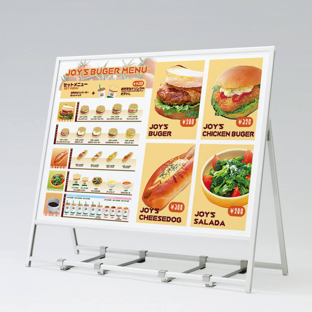 - 大画面、屋外で使える片面A型ポスタースタンドです。
