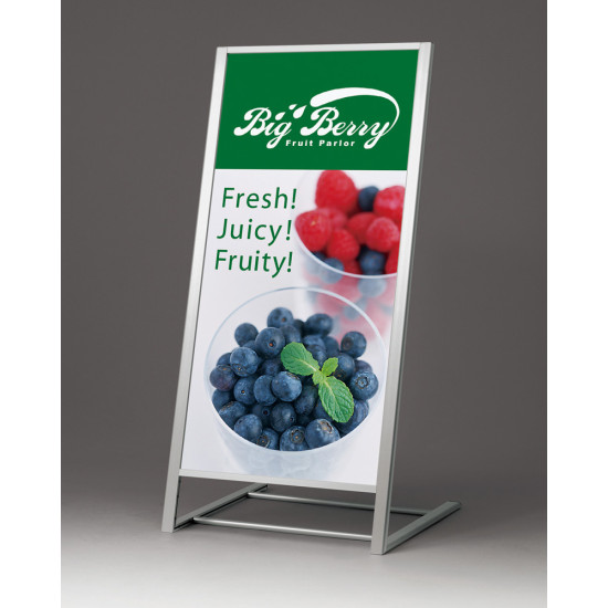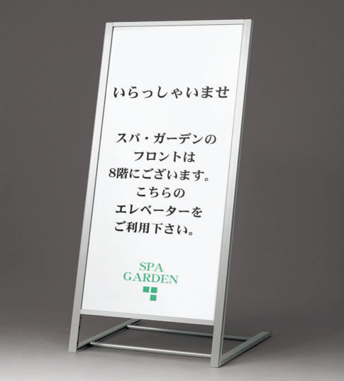 屋外OKのL型スタンド看板。傾斜が付いていて表示面が見やすい片面スタンド看板です。