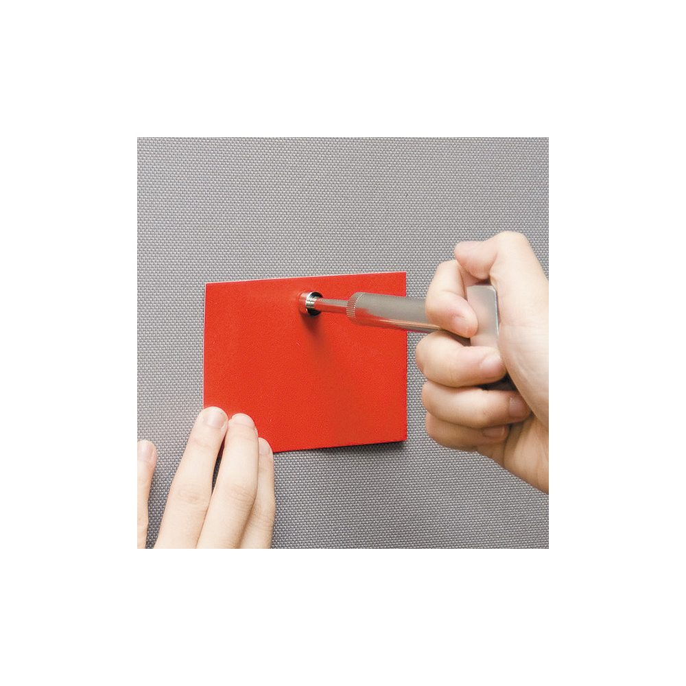 バネの力でピンがしっかり壁面や展示面に打ち込めます。