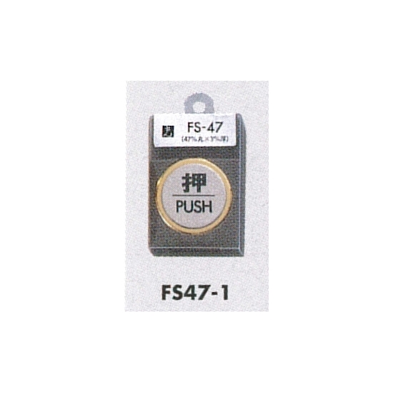 表示プレートH ドアサイン 丸型 ステンレス 外枠真鍮金色メッキ 表示:押 PUSH (FS47-1)の商品情報