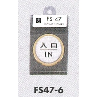 表示プレートH ドアサイン 丸型 ステンレス 外枠真鍮金色メッキ 表示:入口 IN (FS47-6) の商品詳細