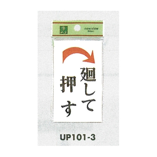 商品説明:表示プレートH ドアサイン 角型 アクリルホワイト 表示:廻して押す 右矢印 (UP101-3)