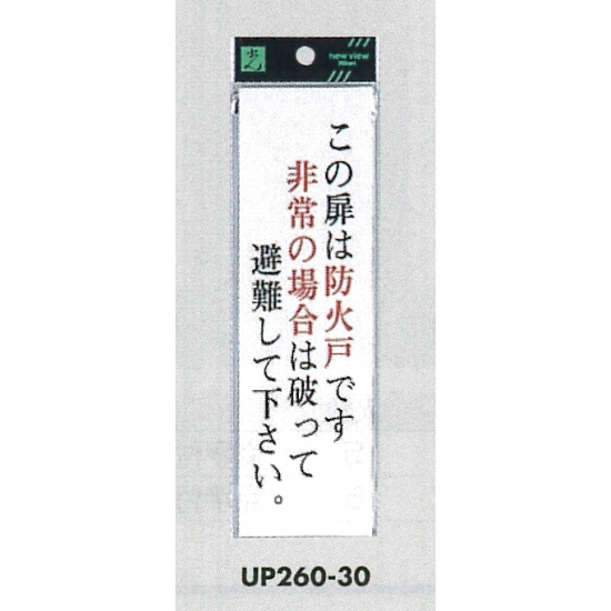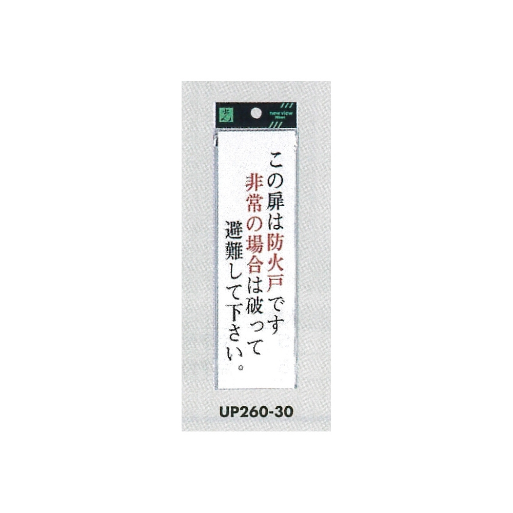 表示プレートH サインプレート アクリル 表示:この扉は防火戸です 非常の場合は… (タテ) (UP260-30)