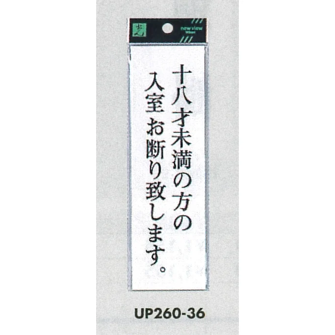 表示プレートH サインプレート アクリル 表示:十八才未満の方の入室お断り致します。 (UP260-36) の商品詳細