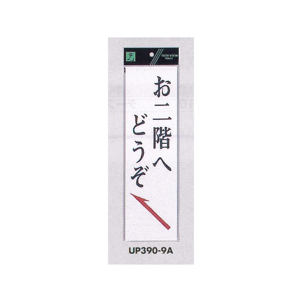商品説明:表示プレートH 店舗向け標識 アクリル白板 表示:お二階へどうぞ 左上矢印 (UP390-9A)