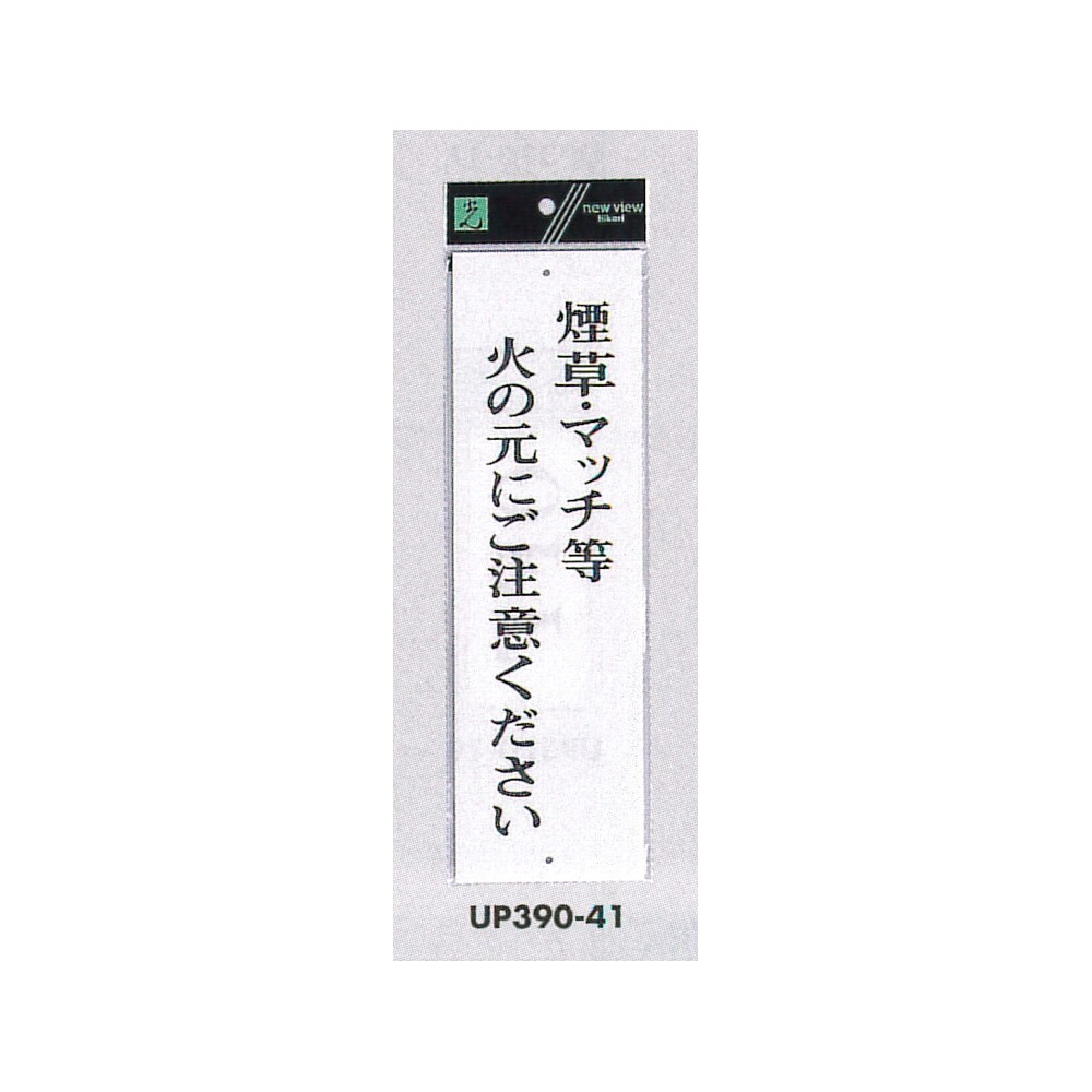 商品説明:表示プレートH アクリル白板 表示:煙草・マッチ等火の元にご注意ください (UP390-41)