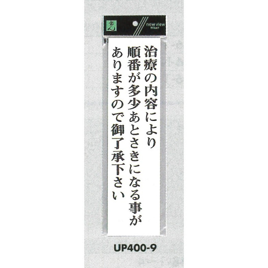表示プレートH アクリル白板 表示:治療内容により順番が多少あとさきに… (UP400-9)
