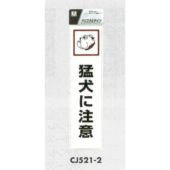 表示プレートH ドアサイン 透明ウレタン樹脂 表示:猛犬注意 (CJ521-2)