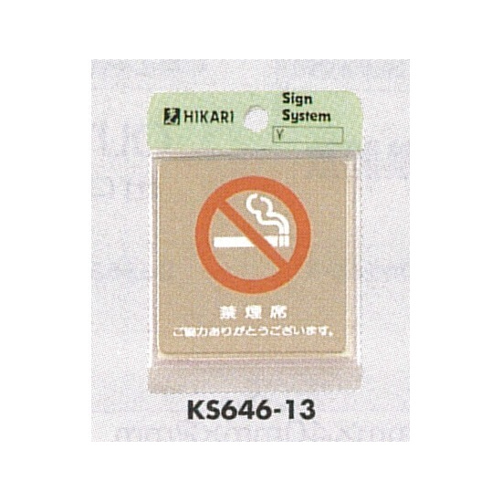 表示プレートH ドアサイン 角型 ステンレス 表示:禁煙席 ご協力ありがとう… (KS646-13)