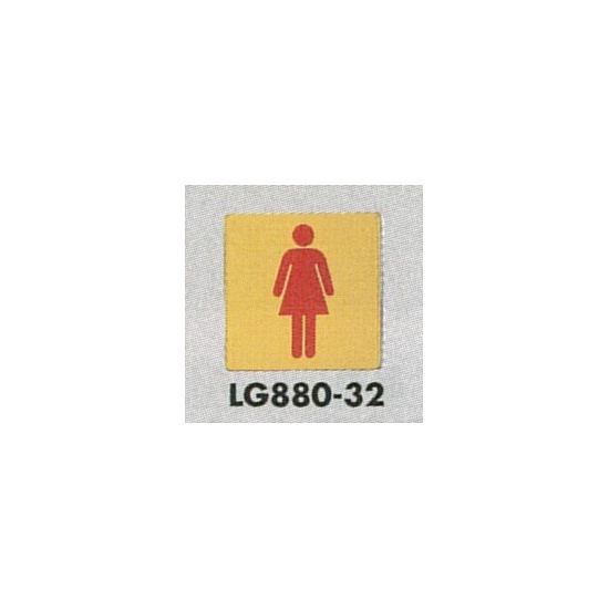 表示プレートH トイレ表示 真鍮金メッキ イラスト 80mm角 表示:女性用 (LG880-32)