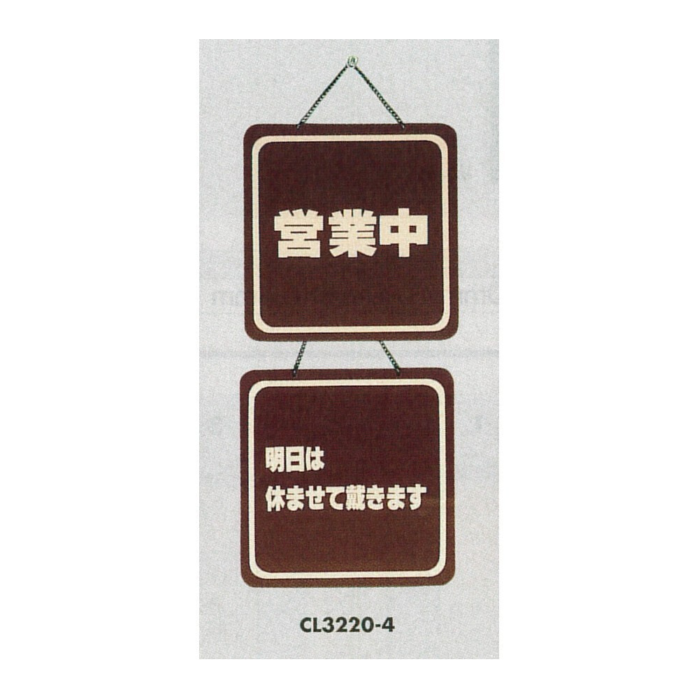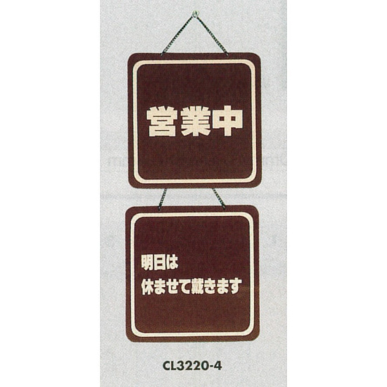 表示プレートH ドアサイン 両面 ブラウン 表示:営業中⇔明日は休ませて… (CL3220-4)